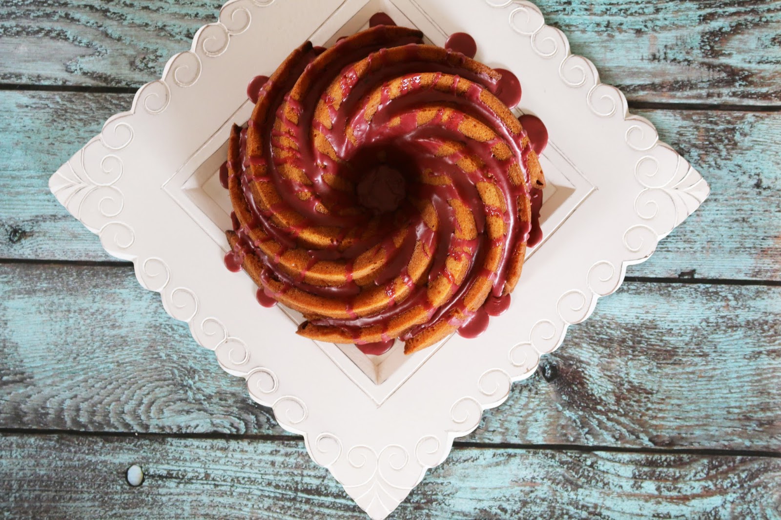 - White Chocolate Bundt Cake with Raspberry Glaze and Fresh Raspberries by The Queen of Scones