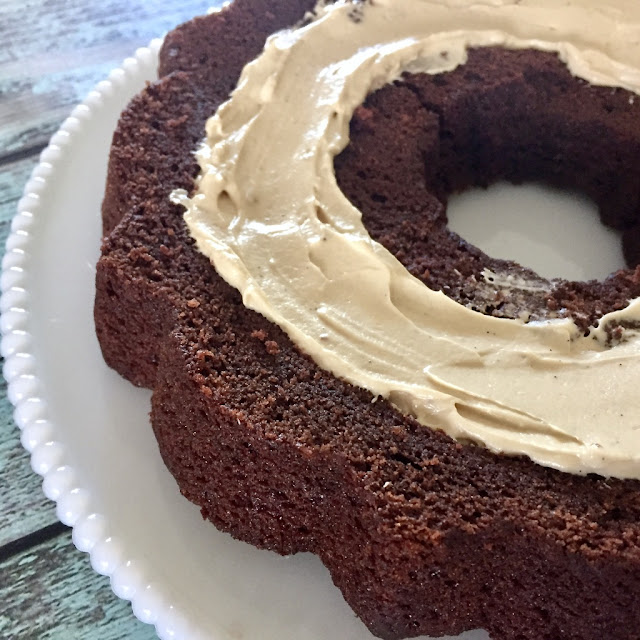 - Frost the entire bundt with the mocha buttercream and place in the refrigerator to set for about 30 minutes.