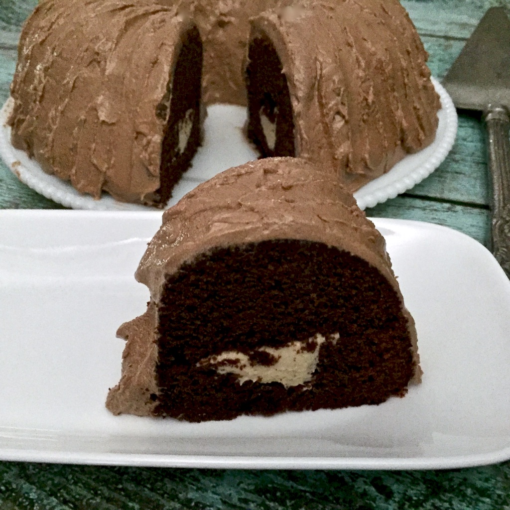 The trouble started when I made the filling and the frosting. When I made the filling the mascarpone and the other ingredients separated into a mixture resembling scrambled eggs. Some bad words were said as the mascarpone cost way more than I wanted to spend. I got out my hand mixer and tried to beat it into separation, but it would not concede. So I grabbed some cream cheese and beat it into the curled mixer and it actually worked! Next was the mocha buttercream, which remained a runny mess no matter what I tried. There were seven egg whites in it, so there was no way I was giving up that easily. I grabbed way more powdered sugar than any person should use and just kept adding it until the frosting held its shape. It then went into the refrigerator to firm up a little more before I spread it over the cake. Honestly, I thought that there was a chance that it would just slide off the cake, but it held up just fine. I have listed the recipes below and maybe you will have better luck than I did. At least you have the solutions I used if something goes wrong. Despite all of the trouble my family really liked this bundt.