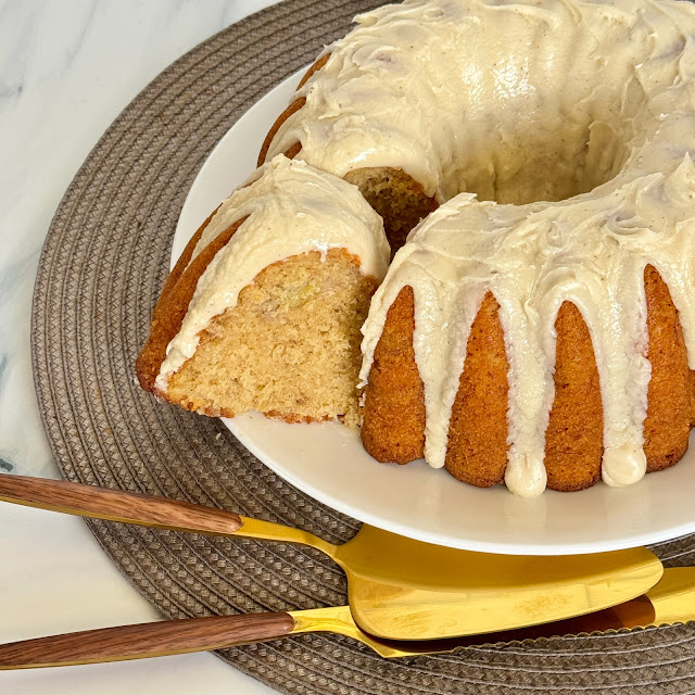 The Cake Slice Bakers are a group of dedicated bakers who all love cake. Each year we choose a new cake-centric cookbook and bake our way through it. Every month we are given 3 choices and on the 20th day of each month we reveal what we have chosen on our blogs. This month's choices were Banana Rum Cake, Chocolate Espresso Cakes with Burnt Caramel, and Negroni Quarantini Cake. Banana cake is a family favorite so this is the cake I chose to bake this month.