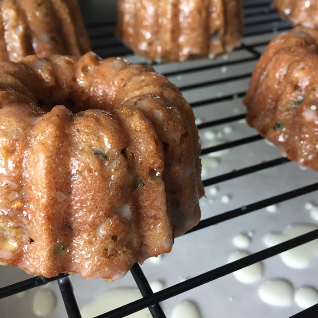 The hardest thing about this recipe is making sure you can grate the apples before they go brown. I was using up apples that I already had but let me tell you don't make the mistake I did and try and use those small Disney apples from Costco. It took me for ever and I said a few bad words as I watched the apples turning color about 1 minute after I grated them. I was reluctant to add lemon juice as I did not want to curdle the mixture, but in hindsight I should have done that. In the scheme of things it didn't matter that much as they were going into a cake batter anyway, and it truly did not affect the flavor at all. Maybe next time I could just dice the apple and grate the zucchini. I also made a quick glaze of powdered sugar and fresh lemon juice, and then zested a little lemon rind for the top. Not mandatory as the bundts are perfectly flavorful without it, but I am a big lemon fan so on it went. The spice level in this cake is on point, it is moist with a soft crumb, and with the glaze it has a little crunch and tang on the outside. Definitely something I would make again.